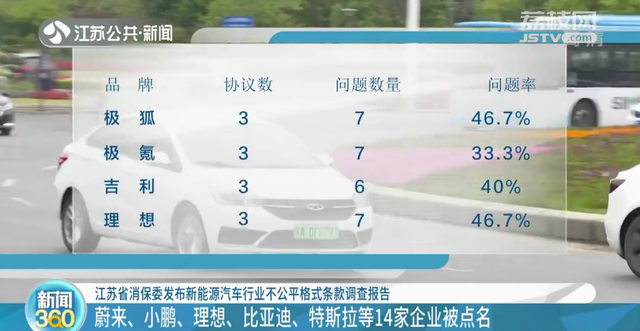 此外,部分新能源车企存在查询回复、删除个人信息不及时,链接第三方增值服务却不提供任何保障,损害用户知识产权等问题。下一步,江苏省消保委将约谈这14家企业,要求各企业限时整改,保障消费公平。