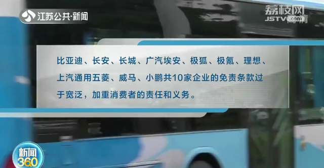 调查发现,比亚迪、长安、长城、广汽埃安、极狐、极氪、理想、上汽通用五菱、威马、小鹏共10家企业的免责条款过于宽泛,加重了消费者的责任和义务。