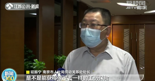 南京市人社局劳动关系处处长延振宁:“不建立劳动关系,不订劳动合同,社会保险落实不下来,外卖小哥、快递小哥万一在路上碰擦摔伤了,是不是能获取像过去一样的工伤保险,这是现实的问题。”