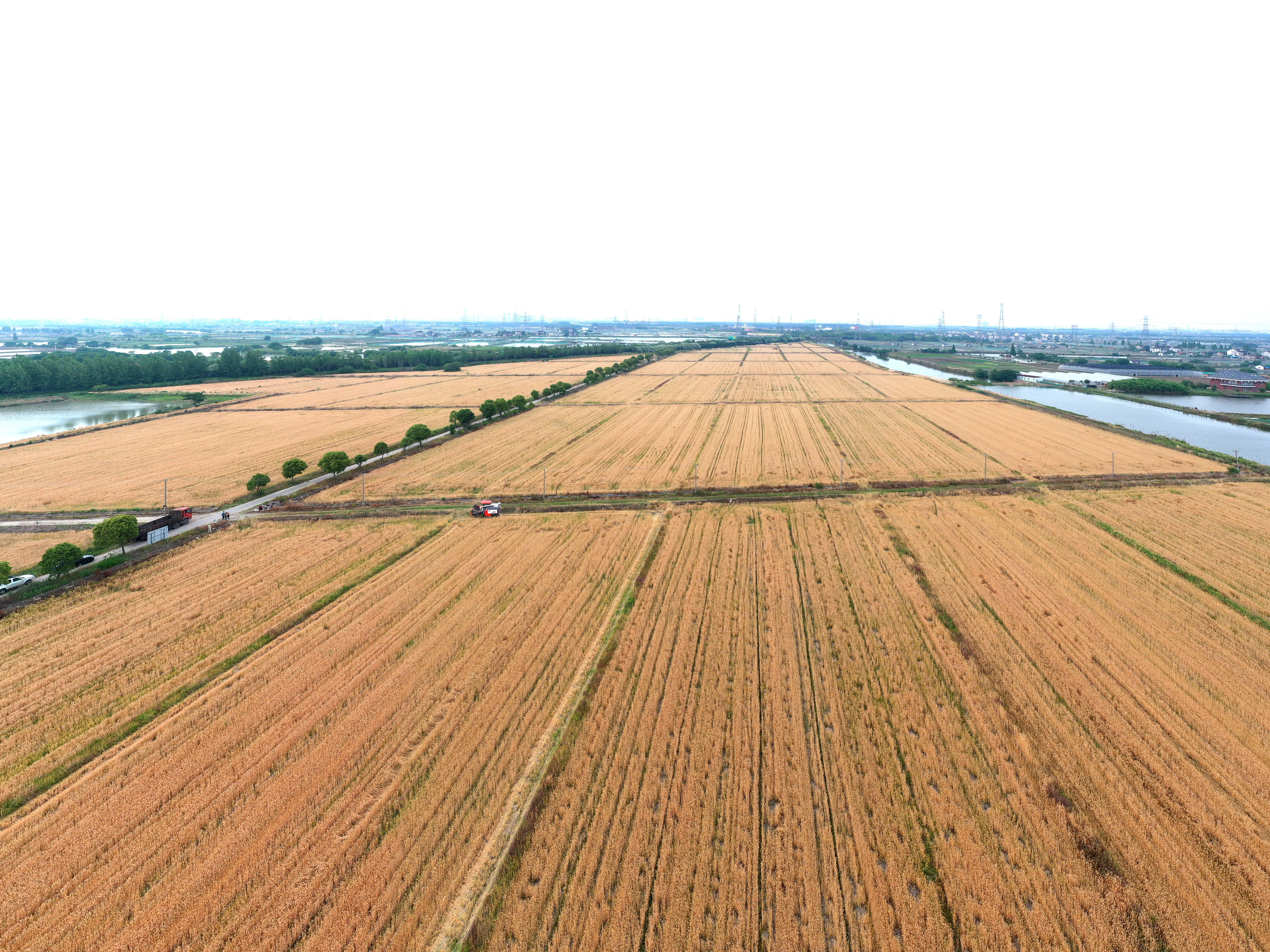 5月20日,在苏州市相城区度假区(阳澄湖镇)戴溇村,200亩小麦开始收割。今年全区夏粮生产形势良好,各地小麦将在5月下旬全面开始收割,夏粮丰收在即。