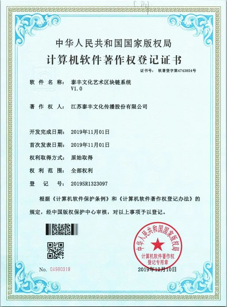一直以来,泰丰文化不断提升自身在科技创新方面的研发意识,探索区块链技术在文化艺术领域的赋能应用,分别合作百度科技、同济大学区块链研究院等,通过百度超级链、梧桐链、澄信链共同完成国内领先的艺术区块链战略平台搭建。