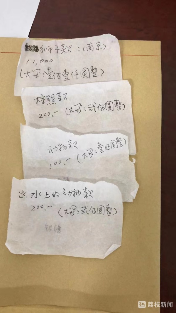 据了解,2022年5月19日上午,景区内游客并不太多。上午11点,动物王国的饲养员和一位女游客在步行区各自捡到一笔现金并上交园区,两笔款项共计人民币11500元,上附的纸条分别写着:“狮子款:(南京)11,000(大写:壹万壹仟圆整)”“棕熊款200(大写:贰佰圆整)”“动物款100(大写:壹佰圆整)”“水上的动物款200(大写:贰佰圆整)”。