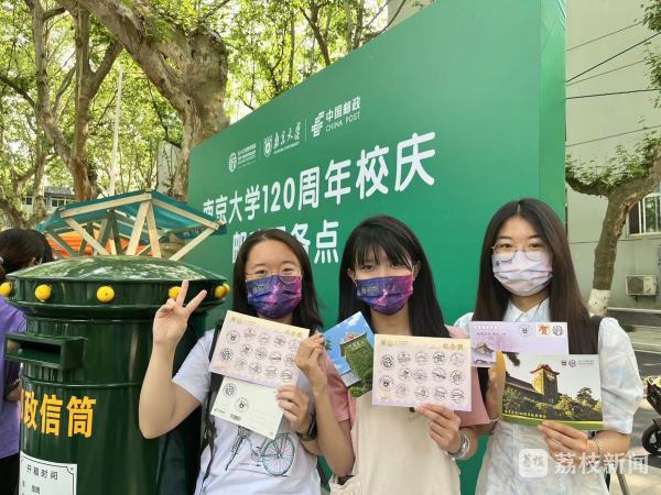 同时,为了方便广大师生当天现场书信邮寄、共享喜悦,南京邮政分公司还在活动台旁设置了邮筒。师生们可以现场写下对远方亲朋好友的美好祝福,加盖喜欢的校庆纪念戳,将明信片或纪念封投到邮筒中当场寄出!