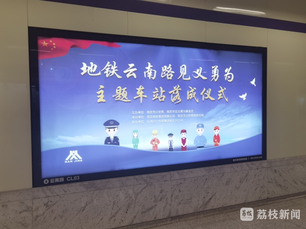 今天(5月20日)上午,由南京市公安局、南京市见义勇为基金会、南京地铁集团共同打造的首个见义勇为主题车站在地铁4号线云南路站正式亮相,旨在依托地铁这个窗口,进一步宣传、弘扬见义勇为精神。据悉,这也是南京市第10个见义勇为主题宣传阵地。