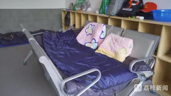 发放抗原试剂、开展健康监测、物资分发、环境消杀……哪里有需要,哪里就有他的身影。每天两班近十个小时的高强度工作,累了把两排躺椅拼拼就是床。
