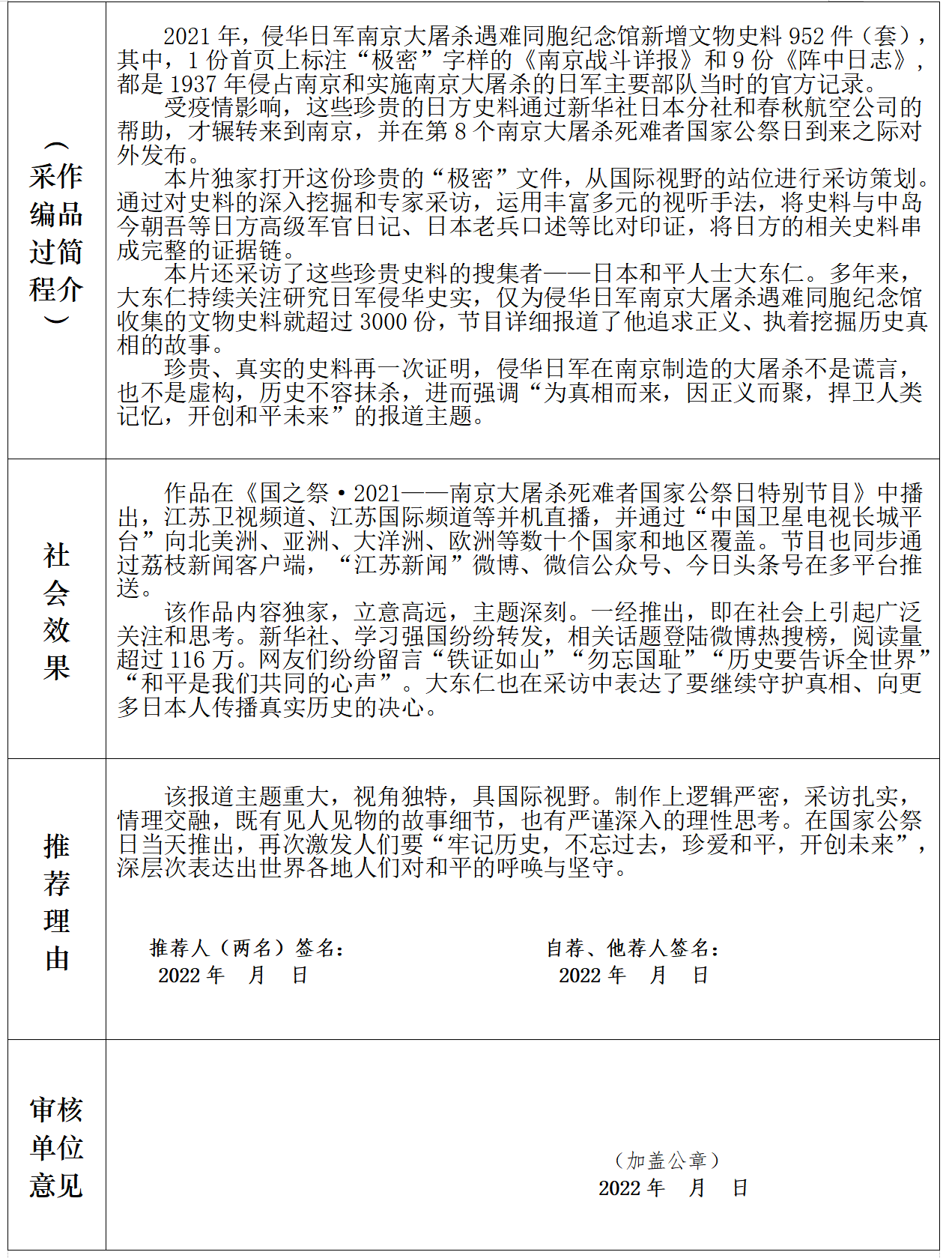 【配音】受疫情影响,大东仁无法亲自将这些史料送来南京。在新华社日本分社和春秋航空公司的帮助下,这些珍贵的史料,最终被顺利交给侵华日军南京大屠杀遇难同胞纪念馆。