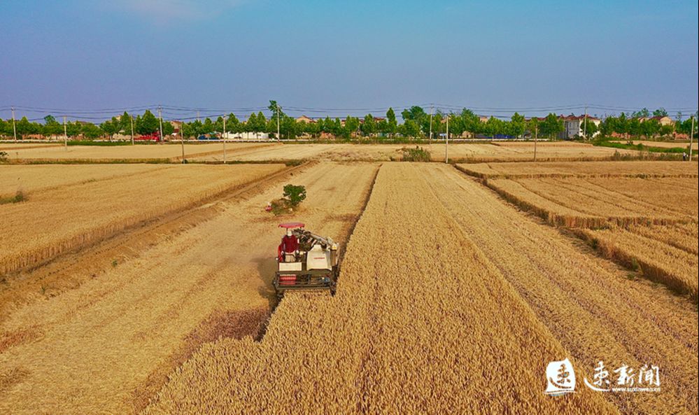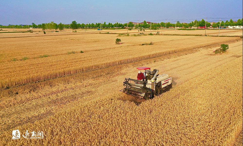 喜开小麦收割第一镰 ,泗阳县开启“三夏”大忙模式,5月21日,泗阳县卢集镇高渡村率先开镰,拉开了夏收序曲。