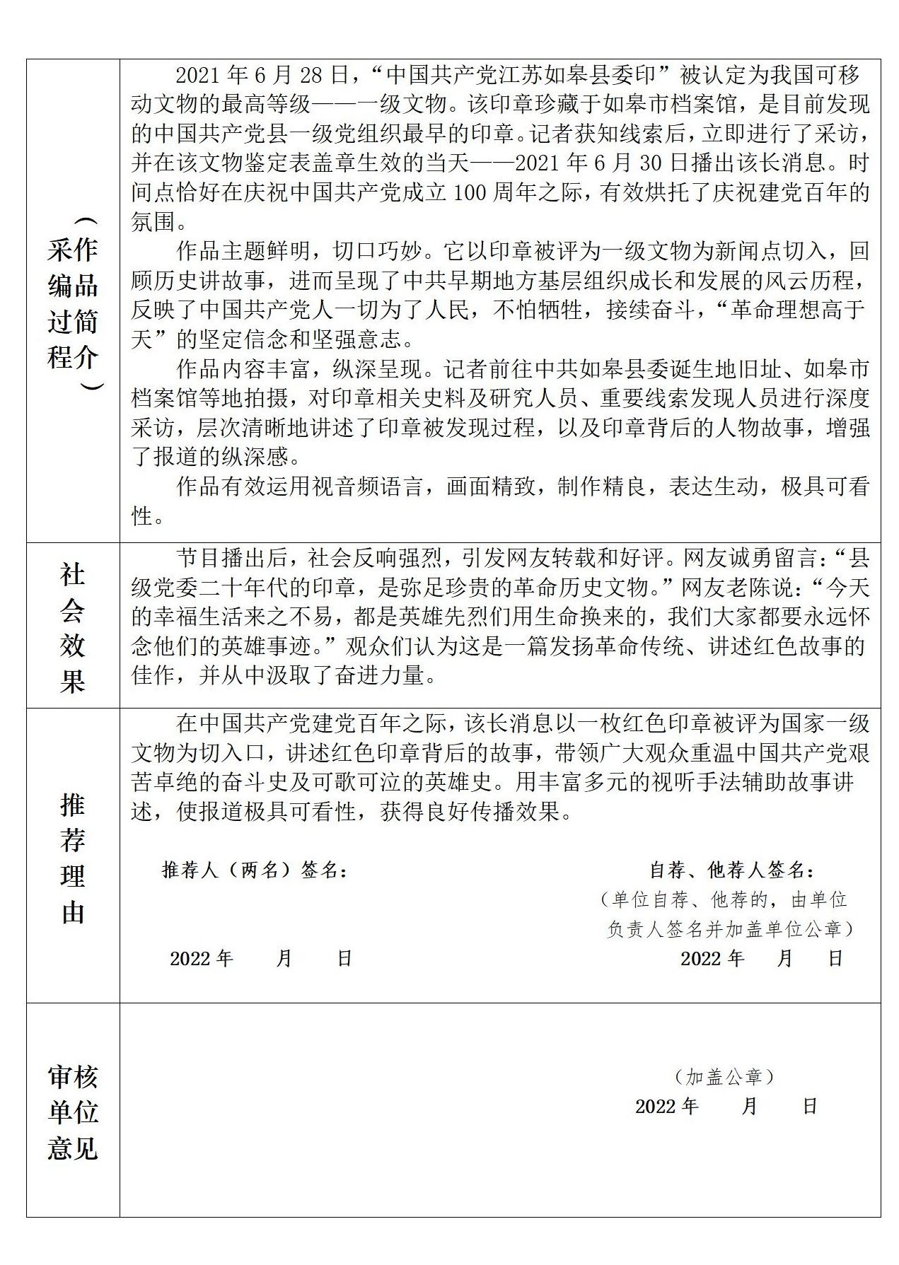 【配音】1929年1月16日,《申报》报道徐芳德被捕,文中明确提到被缴获物品中包括“‘中国共产党江苏如皋县委印’一方”。2021年6月28日,江苏省文物局组织专家赴如皋进行文物认定,专家组经鉴定后将该印章认定为一级文物,鉴定结果将上报国家文物局备案。