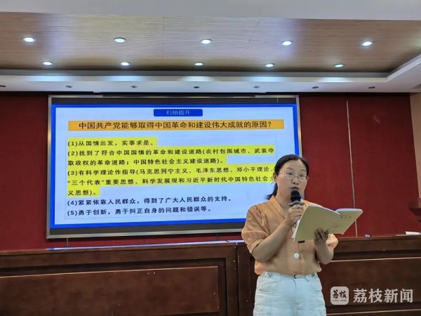 历史组章小亮老师教授初三二轮专题复习课《中国共产党的奋斗历程》。章老师在课堂上坚持目标引领,讲练结合,及时反馈。他以时间为轴引导学生全面梳理中国共产党诞生的理论、条件、重要发展阶段、各个时期的艰苦奋斗的历程,直至最终带领中国人民走上独立、实现民族振兴的伟大事业,形成与时代相适应的建党精神,从中国共产党百年的奋斗历程,认识建党精神及启示、原因。