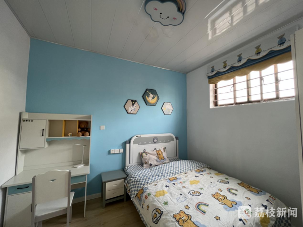 改造后的小屋墙体洁白干净,新床温暖舒适,学习环境温馨安静。