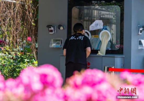 5月23日,北京市朝阳区一处常态化核酸检测采样点。中新社记者 侯宇 摄