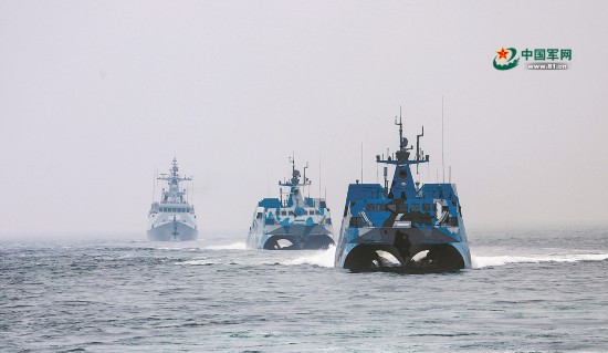 近日,东部战区海军某护卫舰支队派出由护卫舰和导弹快艇组成的舰艇编队,赴某海域开展多课目实战化训练。