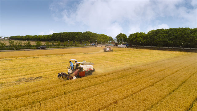 为确保小麦颗粒归仓,溧阳市农业农村部门共组织700余台收割机参与麦收,并在各乡镇设立小麦机收接待服务站,提供麦收信息和维修服务,预计溧阳夏收工作将在6月初结束,今年小麦总产可达9.6万吨。