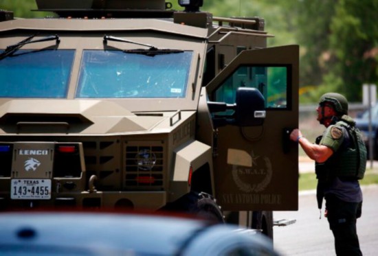 枪击案现场的装甲车。
