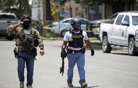 美国警方在枪击案现场应对情况。