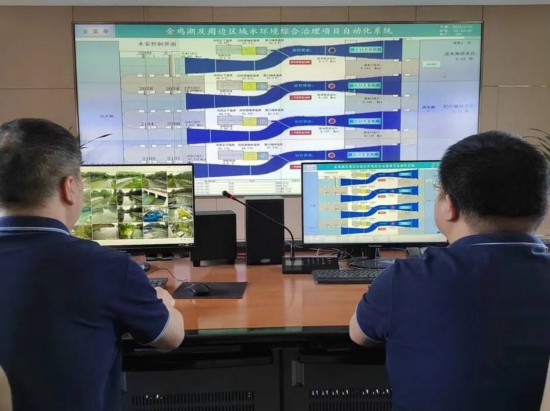 其中智慧管控系统投资约4000万元(含各站点远控设备),配有综合可视化大屏、远程可视化自动控制系统、各站点设施三维模型可视化、远程视频监视系统、远程语音广播系统等,初步形成了以金鸡湖、独墅湖为核心、惠及周边河网、基本覆盖中新区的智慧管理系统。
