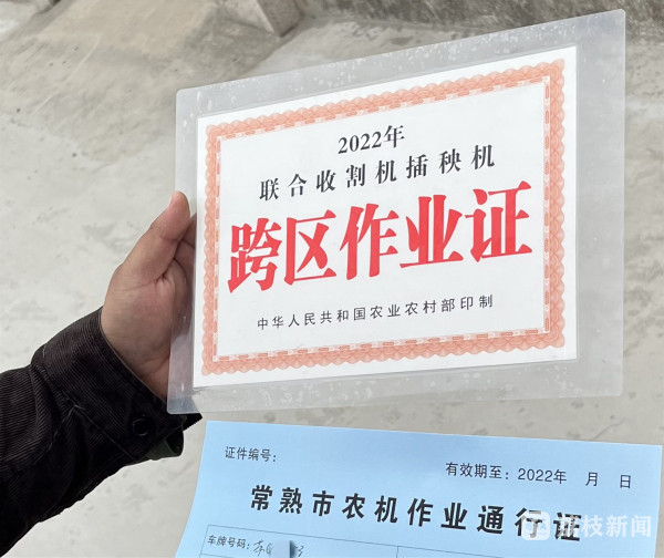 昨日(5月24日)早上7点多,7辆装载着收割机的大货车停靠在辛庄镇华欣村的麦田边,这是昨晚刚到常熟的一个跨区收割队,来自连云港。在村委会工作人员的协助下,他们快速完成了健康码、行程卡和48小时候核酸检测证明的核验程序,并用跨区作业证换取了常熟市农机作业通行证。在随后的一段时间里,他们只要按照规定继续做好核酸检测,就可以在常熟区域内为农户提供服务了。