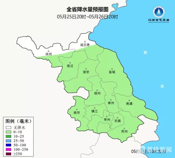 眼下,伴随入夏的还有两场雨,气温也将相应下降,26日苏南地区最高仅有26℃左右。蒋义芳介绍:“25日有一股弱冷空气影响,在本省长江以北大部分地区,自北向南会有雷阵雨天气,26号受冷空气的影响气温会有所下降,苏南部分地区还会有些小雨。28日夜里到29日,沿江苏南地区还有一次明显的降水,量级目前来看是中到大雨。”