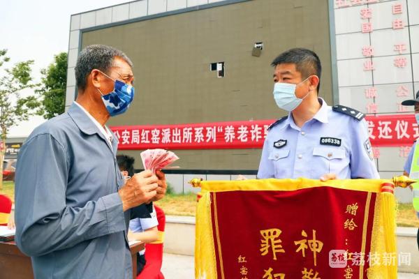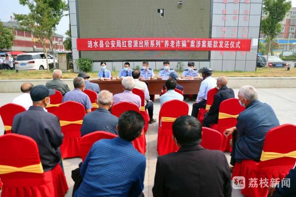 5月25日上午,淮安市涟水县公安局红窑派出所举行系列“养老诈骗”案涉案赃款发还仪式,集中展示打击整治养老诈骗专项行动所取得的丰硕战果,向群众发还被骗养老钱3万余元,前来领回被骗钱财的受害老人共20余名参加了发还仪式。