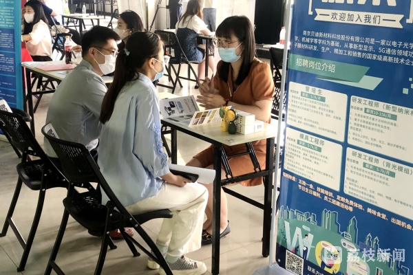 “我是2013年从咱们南工程毕业的,今年是第一次以校友的身份回母校进行校园招聘。南工程的专业,比如材料、国贸、外语、市场营销等,与我们的岗位匹配度很高,我们一直期待能来南工程开展招聘。受本轮疫情影响线下校招基本停摆,高校企业进不来,很感谢江宁人社和高新区能为我们提供这样好的平台。”南京玻纤院膜材料公司综合部副部长刘鹏表示。