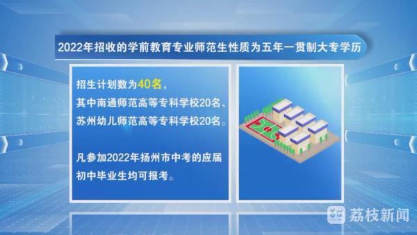 2022年招收的学前教育专业师范生性质为五年一贯制大专学历,招生计划数为40名,其中南通师范高等专科学校20名、苏州幼儿师范高等专科学校20名。