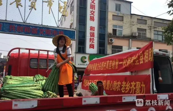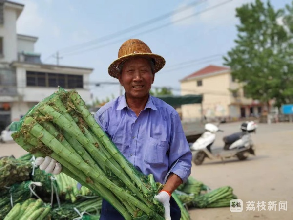 "听孩子说咱县莴苣滞销了,所以过来买的。"一位九十多岁的爷爷骑着三轮车买了20斤莴苣。