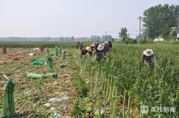 5月25日,记者获悉,近日,连云港市灌南县田楼镇头图村书记付明良一会忙着统计订单,一会忙着去田头安排装运事项,订购莴苣的电话接连不断。