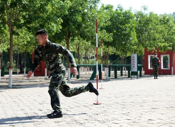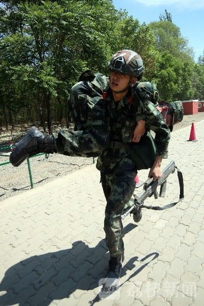 赛场如战场。竞赛围绕2大类12个课目进行,设置了30米×2蛇形跑、仰卧起坐、器械、救护组合练习等课目,采取“同台竞技、分层实施、争夺擂主”的方式展开。