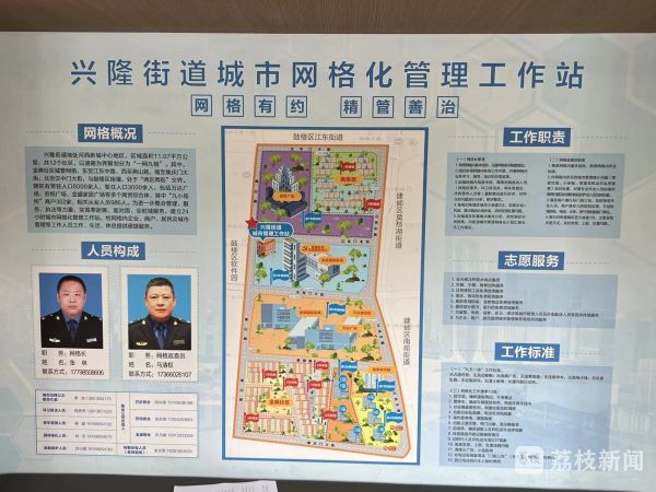 据了解,这是南京首家24小时城管工作站,由城管网格长或网格巡查员常态化办公,环卫保洁、停车管理、园林绿化等工作人员定期坐班,维持运转。建邺区兴隆街道办事处副主任高建明介绍,今年,兴隆街道计划再建设3到4个城管工作站,计划设在老旧小区、文旅片区等地方,更好地为民服务。