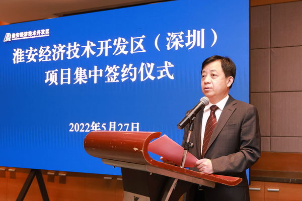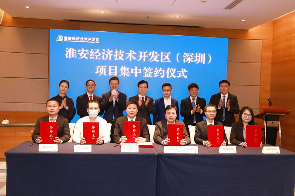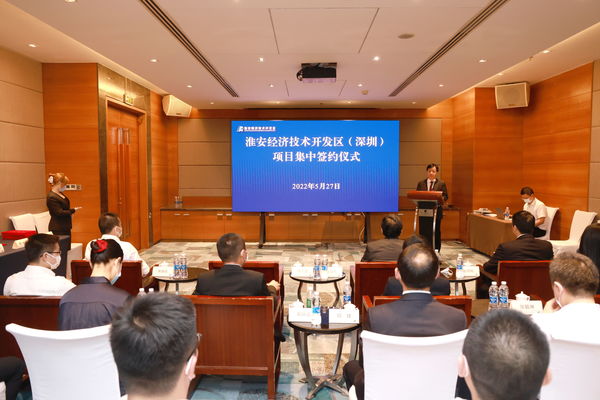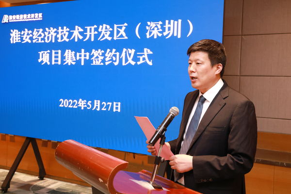 5月27日下午,淮安经济技术开发区在广东深圳举行重大项目集中签约仪式。集中签约的6个重大项目,总投资123.4亿元,其中,工业项目5个、服务业外资项目1个。市委常委、淮安经开区党工委书记徐子佳致辞并见证签约。经开区管委会副主任张培刚与6家企业签约。