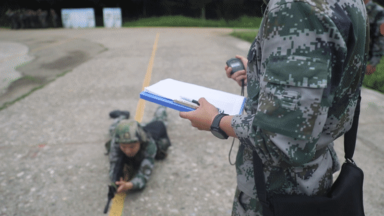在战术基础考核课目中,参考人员综合运用所训技能,在规定时间内匍匐通过35米障碍区,交替掩护通过敌炮火拦阻区,让新兵第一次实践所学本领。