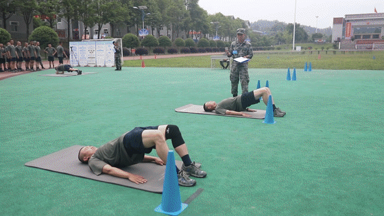 考核内容共设军人常识、队列、刺杀、战术基础动作、手榴弹投掷、自救互救、防护、心理行为训练、军事体育等十四个课目。