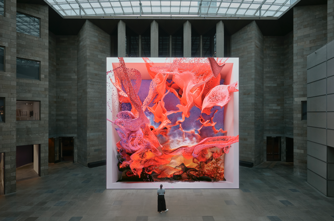 同时作为观察者和被观察者是什么感觉?基于观察者效应,我们想问,艺术家会和艺术作品相重合吗?当把人工智能应用于艺术创造时,人工智能超越了人类思维,并引入了人类无法想象的量子逻辑。一个量子艺术品可能包含无数的模式,而传统意义上的 “艺术家”可能只允许其折叠成为单一可能的艺术品。在这一过程中,艺术家就像上述实验的观察者一样,限制了潜在的无限模式,而让艺术创作塌缩成单一的艺术作品。在这个意义上,量子计算是隐藏在我们所见、所触或所经历的世界之外的现实的见证者。艺术作品创作背后的传统线性控制模式——艺术家是创造者,而艺术品是产品,这样的概念将会显得过时。在某种程度上,艺术家变成一种对万物有灵的否定,而希腊传统中的“智性”(nous),即生物与非生物之间的区别,也被融合与消解。