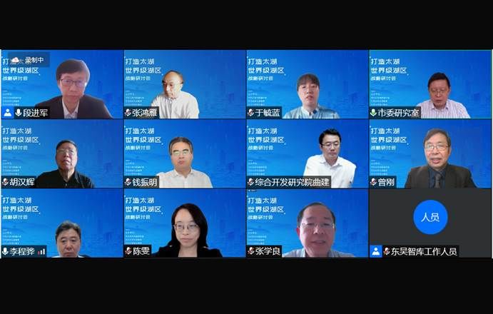 中国(深圳)综合开发研究院副院长曲建,华东师范大学区域经济学终身教授、城市与区域规划研究院院长曾刚,中国区域经济50人论坛成员、上海财经大学长三角与长江经济带发展研究院执行院长张学良,东南大学经济管理学院教授胡汉辉,南京大学城市科学研究院院长、江苏省城市经济学会会长张鸿雁,中国科学院南京地理与湖泊研究所研究员、苏科创新战略研究院理事长陈雯,江苏省委《群众》杂志社副总编辑、南京大学教授李程骅,苏州大学中国特色城镇化研究中心主任、政治与公共管理学院教授钱振明等专家学者,中共苏州市委研究室副主任沈向东、苏州大学人文社会科学处处长于毓蓝,以及东吴智库研究员、学校师生代表、行业代表、企业代表参加了线上会议。会议由苏州大学东吴智库执行院长段进军教授主持。