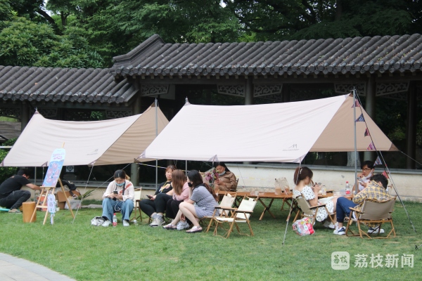 与此同时,伴随着夕阳洒在湖面的金色倒影,《南京城市史》作者、著名学者、作家薛冰先生,也向现场的游客朋友分享着莫愁湖的文学故事。游客身在其中,听到的正是眼前看到的,仿佛眼前的建筑,这一草一木都被赋予了新的意义和生命。