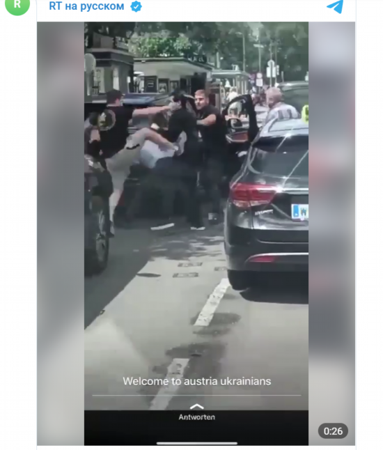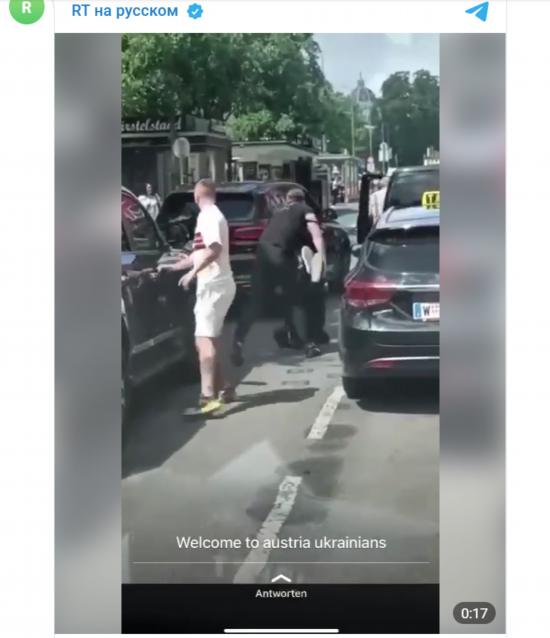 RT:据媒体报道,有视频显示,乌克兰人在奥地利殴打出租车司机