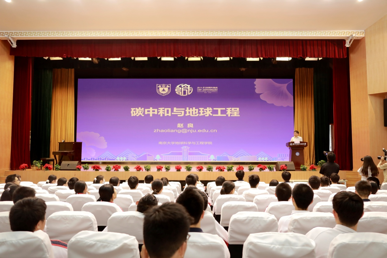仪式刚一结束,十三中同学们的“南大课程第一讲”就开始了!南京大学自然资源研究院副院长赵良教授带来讲座《碳中和与地球工程》。