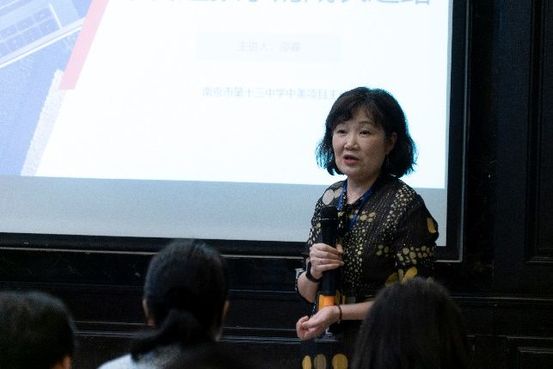 主持人在致谢到场的初三家长后,首先邀请十三中中美班项目主任邵睿做开场分享。邵主任主要从“什么样的学生适合中美班”、“中美高中AP课程班的优势”、“双学籍管理模式”、“如何多国混申”、“如何提升综合能力”五个维度介绍中美班并分享她近20年的国际教育经验。