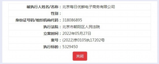 中国执行信息公开网显示,北京每日优鲜电子商务有限公司(下称“每日优鲜”)新增一条被执行人信息,执行标的532.95万,案号为(2022)京0105执17202号。