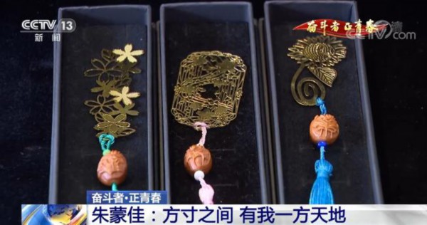 功夫不负有心人,朱蒙佳的作品渐渐受到认可,多次获得省级、国家级工艺美术大奖。现在的她一心要拉近核雕与时尚的距离。汉服流行,她设计核雕盘扣;文创流行,她推出核雕书签;开发深受年轻人喜爱的萌宠系列产品……让古老非遗走进生活,更有温度。