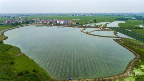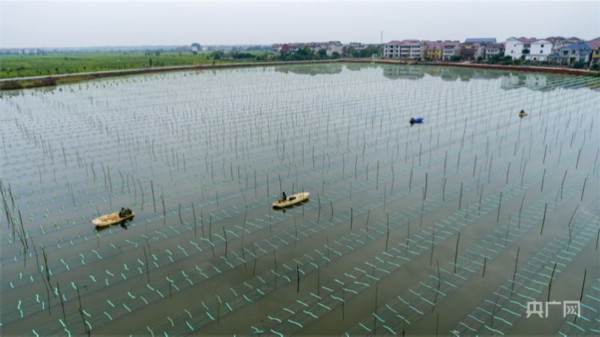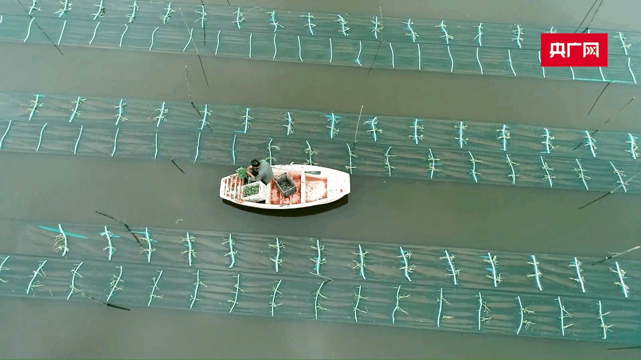 央广网新余5月30日消息(记者 邓玉玲)近日,江西省新余市渝水区姚圩镇姚圩村百亩水上蔬菜种植基地,农民在进行空心菜抛苗。该基地采取立体种养模式,水上种菜、水下养鱼,水上蔬菜依靠吸收水体中的氮、磷等富营养物质,实现蔬菜种植不施肥、不使用农药,同时净化水质,降低水产养殖发病率,形成鱼菜共生系统。