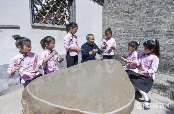 记者在采访中了解到,“海州五大宫调”是江苏省首批被列入国家级非物质文化遗产名录的璀璨瑰宝。碟、筷等打击乐器为其特有的表现形式。为了进一步传承非物质文化遗产,连云港市苏光中心小学成立“海州五大宫调”传唱社团,邀请板浦当地老艺术家们走进校园,带着一群天真活泼的孩子学习和传承五大宫调。