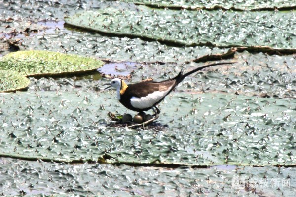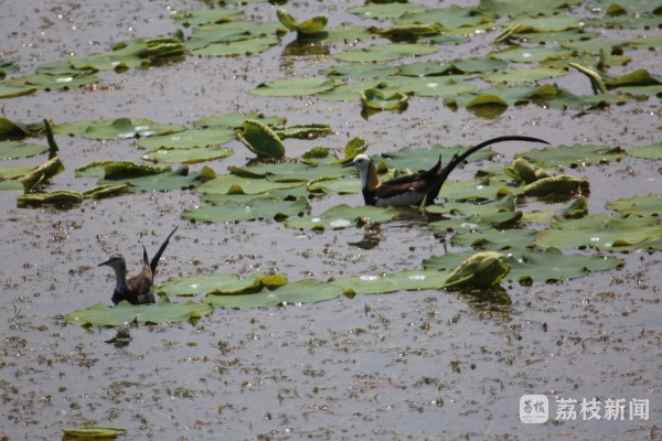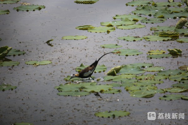 据悉,这种水雉对生态环境的要求极高,在我国的数量已非常稀少。绿水湾省级湿地还原修复后养殖业迁走了,闲人禁止进入、相对僻静区,菱角、芡实、荷藕等浮水型水生植物布满水面,为水雉栖息繁殖提供了适合的安居环境。