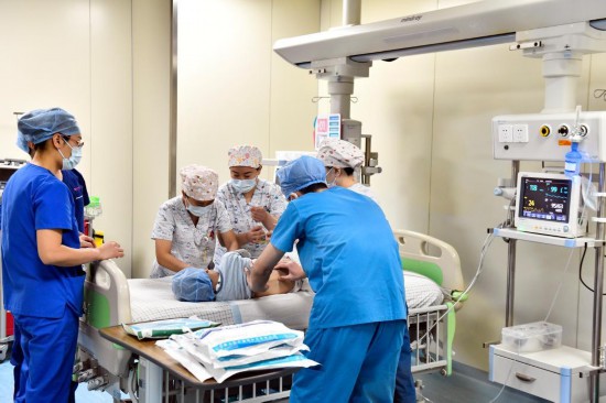 1月1日,在山东省枣庄市妇幼保健院儿童ICU病房,医护人员准备为4岁的脊髓性肌萎缩症患儿注射靶向治疗药物诺西那生钠。(新华社记者郭绪雷 摄)