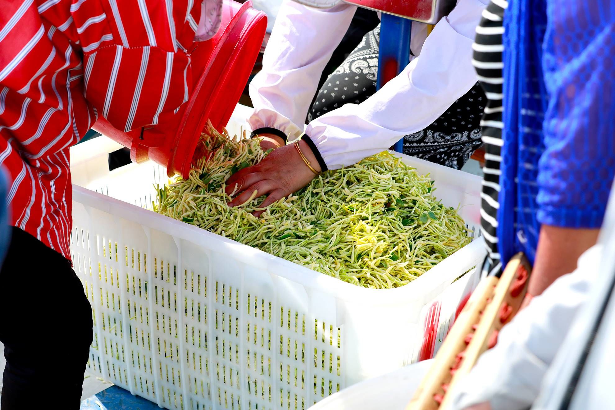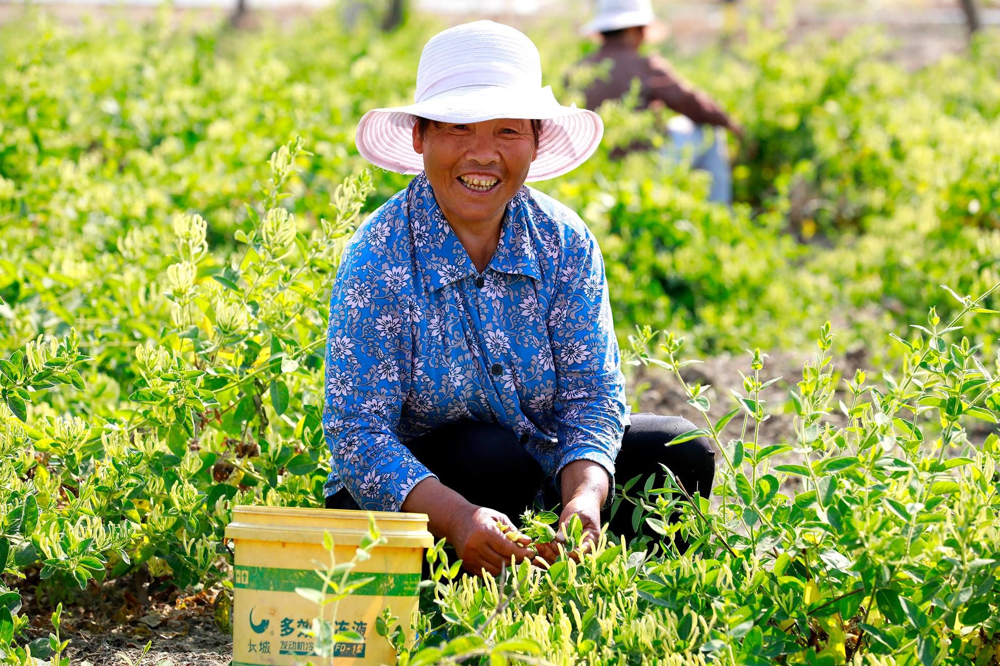 江苏省宿迁市宿豫区曹集乡曹家集社区的3000亩金银花进入盛花期,吸引了不少周边乡镇的居民前来采花。