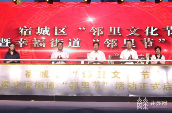 市委宣传部副部长、市文明办主任陈夫生,区委常委、宣传部部长陈飞,区委宣传部副部长、区文明办主任杨春,区妇联主席、区行政审批局局长丁翠红,幸福街道党工委书记王加贵,以及荣获第七届宿城区文明家庭的代表共同启动“邻里文化节”。
