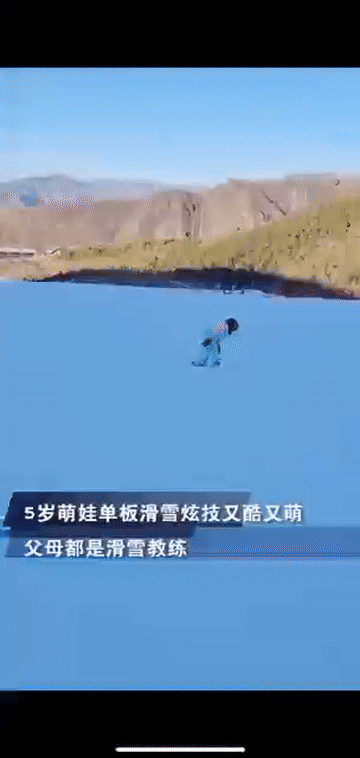大屏播放的萌娃滑雪画面