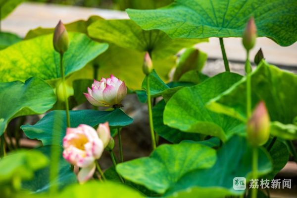 除了接天莲叶的大湖荷花之外,梁洲金陵盆景园内精品荷花展也已拉开帷幕。今年精品荷花展共展出近500盆,约160种珍贵荷花品种,包括中国红、剑舞、心血、白玉、琴韵等多个品种已竞相开放,亭亭玉立,俏丽高雅。