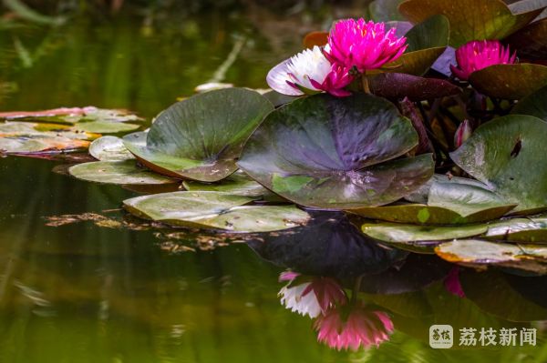 此外,玄武湖景区的睡莲也已全面绽放,美不胜收。值得关注的是,景区的一株双色睡莲悄然绽放。据了解,这株睡莲学名叫“夹克丰”,一花双色并非基因突变。这个品种本就可以开出白色和红色两种颜色,曾获得最佳耐寒睡莲以及最佳睡莲新品种的双一等奖。