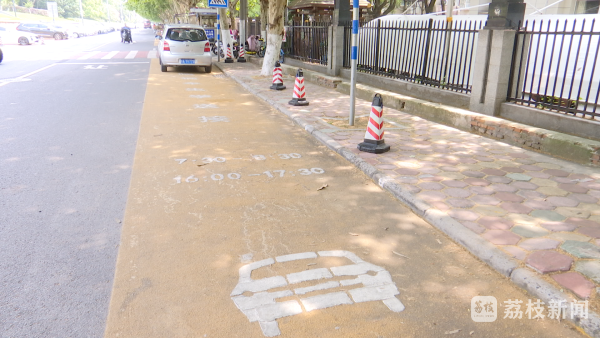 在施划相关区域前,学校提前汇总了各批次学生数量,还有私家车、非机动车等交通方式的使用人数比例。依据这些信息,交警联合城管、街道,制定专属的交通组织方案,同时完善校园周边标志标牌,优化路口信号配时方案。目前,南京市鼓楼区已经有5所学校有了专属的交通组织方案。在一些没有路边停车位的学校门口,交警部门利用周边道路设置临时接送专用区、采取限行、禁行、微循环等组织方式,来保证校门外的交通秩序。